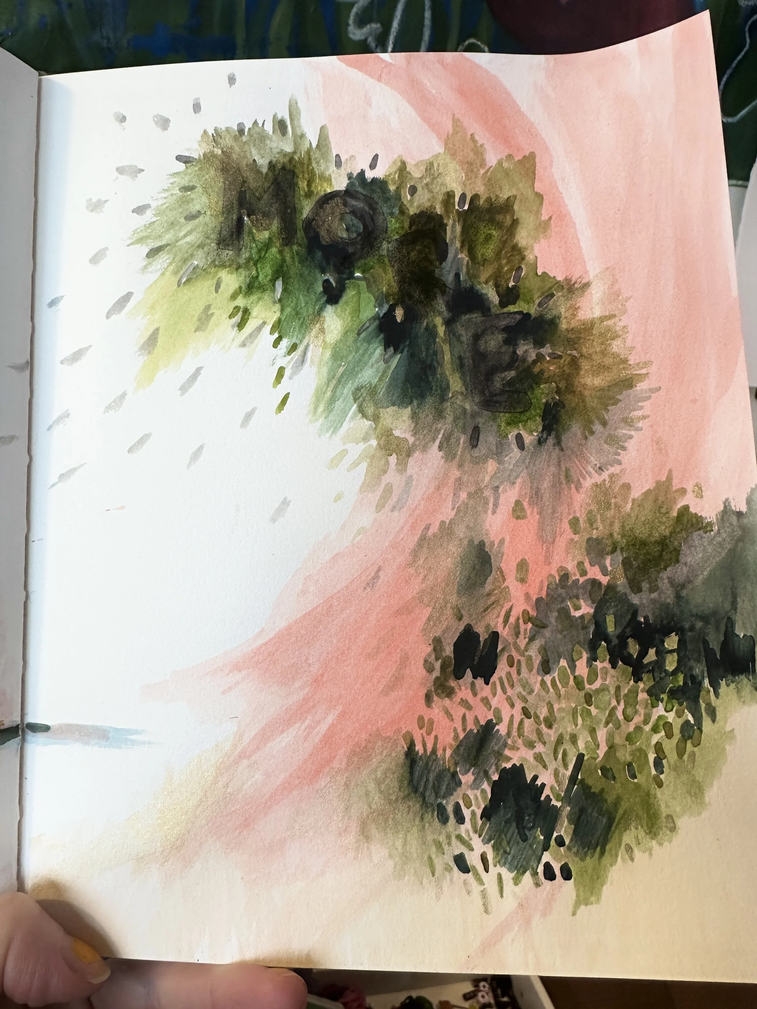 Today’s morning pages were kind of a continuation of yesterday's because yesterday’s morning painting page had crept over into today’s. So here’s how it progressed.